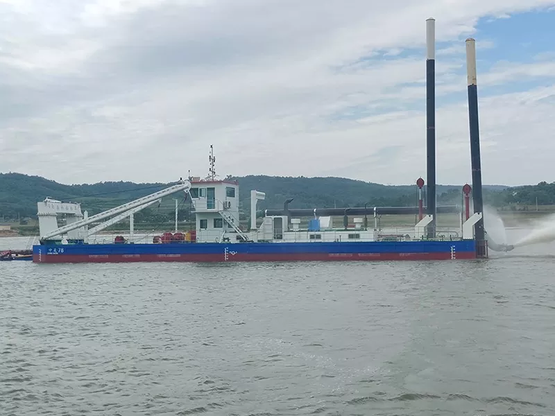 ● 4 méteres hosszú löketű kocsirendszer:A továbbfejlesztett hidraulikus spud kocsi 4 méteres lökettel rendelkezik, ami hosszabb folyamatos kotrási ciklust tesz lehetővé, és jelentősen csökkenti az áthelyezési állásidőt a kisebb modellekhez képest.